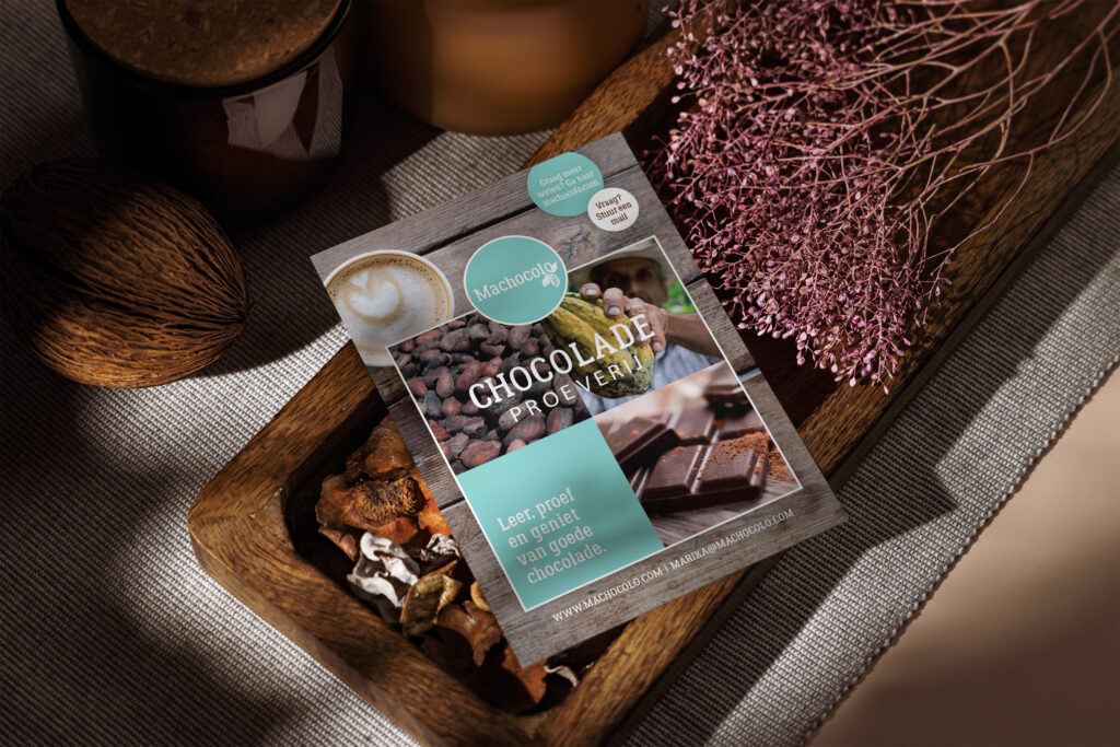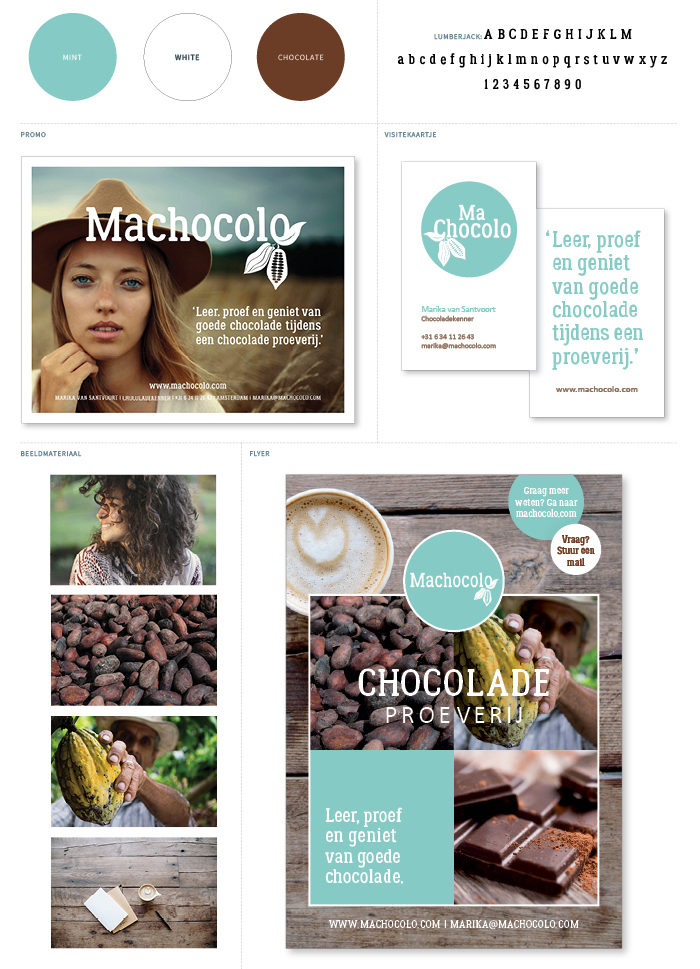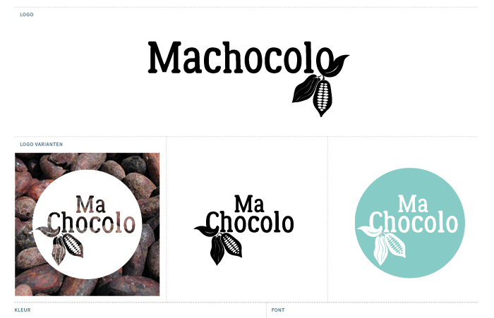 Huisstijl Machocolo Een huisstijl met cacao in de hoofdrol. Het proeven van chocolade, workshops… Graag ontving de opdrachtgever een huisstijl om aan de slag te kunnen met haar proeverijen.Zie hieronder de gemaakte huisstijl. Terug naar portfolio