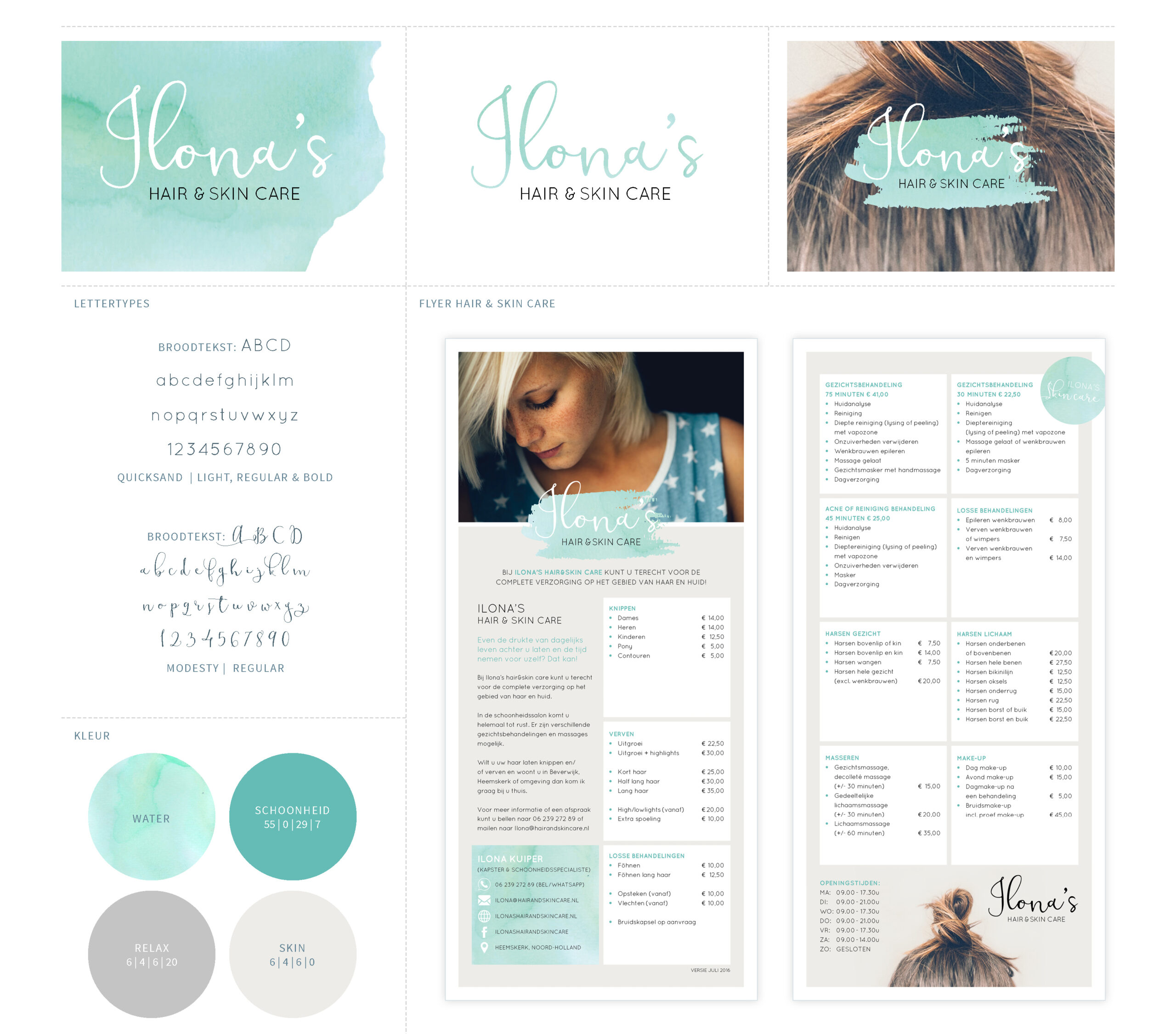 Opdrachtgeefster Ilona heeft mij benaderd voor het ontwerpen van haar huisstijl voor het bedrijf dat zij aan het opstarten was. Een plek voor beauty behandelingen en een kapsalon.