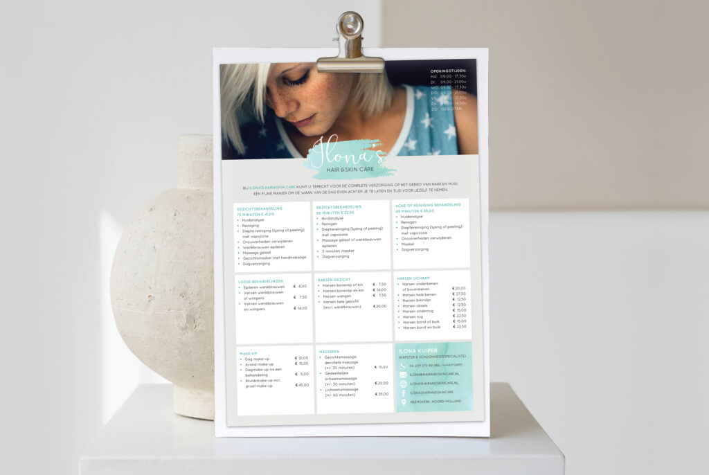 Zie hieronder het resultaat van onder andere het logo, de prijslijst en de cadeaubon.